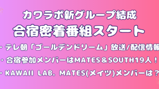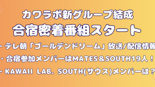 興味カワラボ新グループ結成合宿放送&配信!メイツメンバープロフィール KAWAII LAB.(カワイイラボ、カワラボ)新グループ結成合宿に密着したオーディションドキュメンタリー番組「『ゴールデンドリーム』KAWAII LAB.合宿編」放送・配信!KAWAII LAB. MATES(カワラボメイツ)メンバーは? 2025.11.03興味
