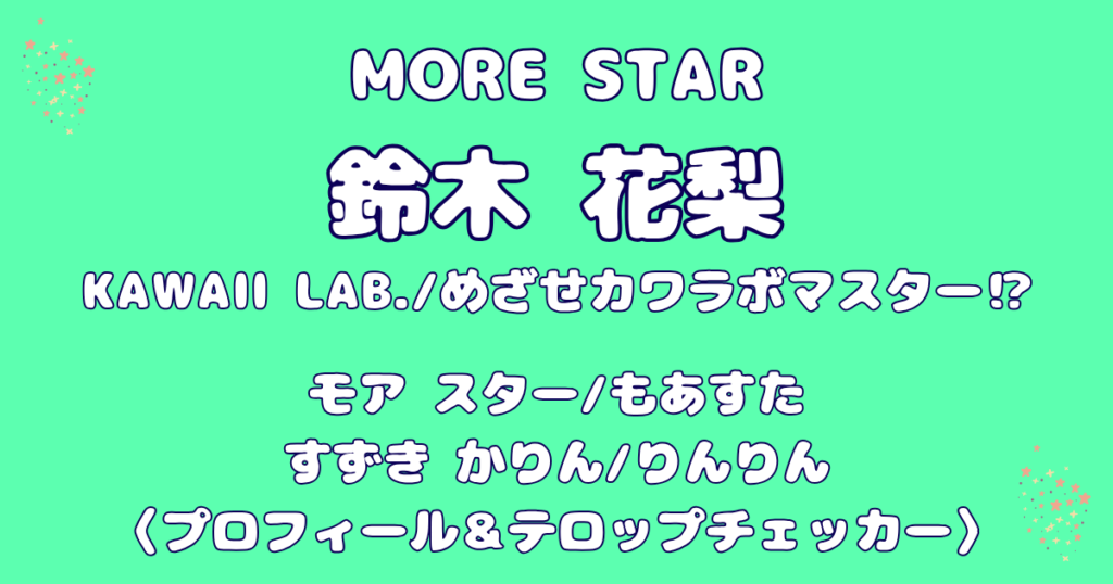 興味鈴木花梨(もあすた)の岡山・ミスコン前世は?身長などプロフィール KAWAII LAB.の新グループ「MORE STAR(モアスター)」ミントグリーン担当、鈴木花梨(りんりん)を紹介!女子高生ミスコン「りんたん」の過去や出身岡山での前世アイドル、身長・誕生日などプロフィール。「自称5ちゃい」、やわらかさと強さのギャップ! 2026.03.25興味