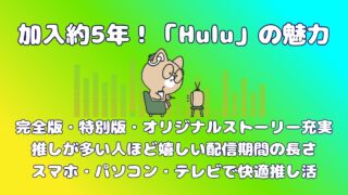 興味Hulu加入5年のオタクが語る魅力!完全版充実・広告なしで快適推し活 動画配信サービスHuluを5年愛用するオタクが、推し活に欠かせない魅力を徹底解説!地上波未公開の「完全版」やスピンオフ、広告なしの快適さ、見逃し配信期間の強みなど、地方組が救われたポイントを凝縮。月額1,026円で「地上波+αの世界」へ爆走しましょう! 2025.11.24興味