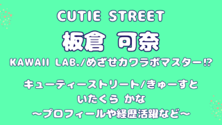 興味CUTIE STREET・板倉可奈の誕生日はいつ?年齢経歴や活躍 CUTIE STREET(キューティーストリート・きゅーすと)板倉可奈(いたくらかな)の年齢・誕生日・出身・MBTI・身長などプロフィールやカラー。カワラボグループ4つ目、KAWAII MAKERとして活躍中!メンバーひとりひとりを知ろう♪ 2025.10.21興味