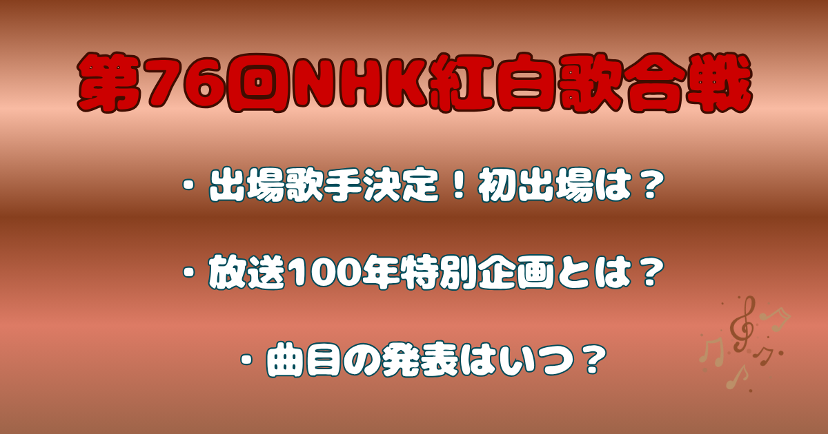 第76回NHK紅白歌合戦の曲目発表はいつ?