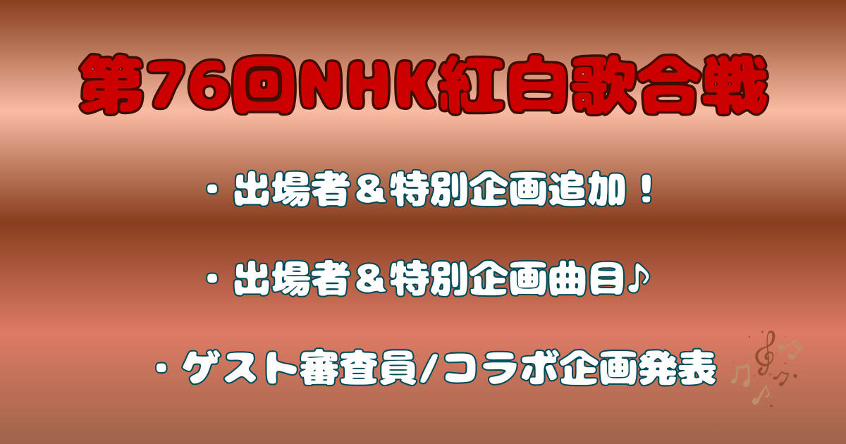 • 第76回NHK紅白歌合戦の出場歌手(最新版)
