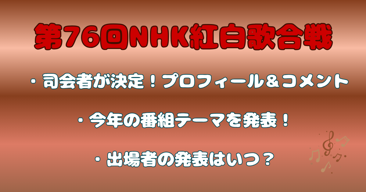 2025年12月31日、大みそかに放送される「第76回NHK紅白歌合戦」についての情報が出てきた♪
