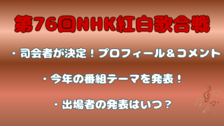興味第76回NHK紅白歌合戦出場者発表はいつ?司会者&テーマを発表! 2025年12月31日に放送される第76回NHK紅白歌合戦、司会者とテーマが発表された。司会は綾瀬はるかさん、有吉弘行さん、今田美桜さん、そして鈴木奈穂子アナウンサー。「つなぐ、つながる、大みそか。」出場者の発表はいつ?初出場も見逃せない! 2025.10.14興味